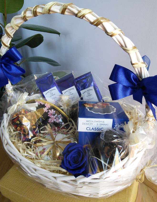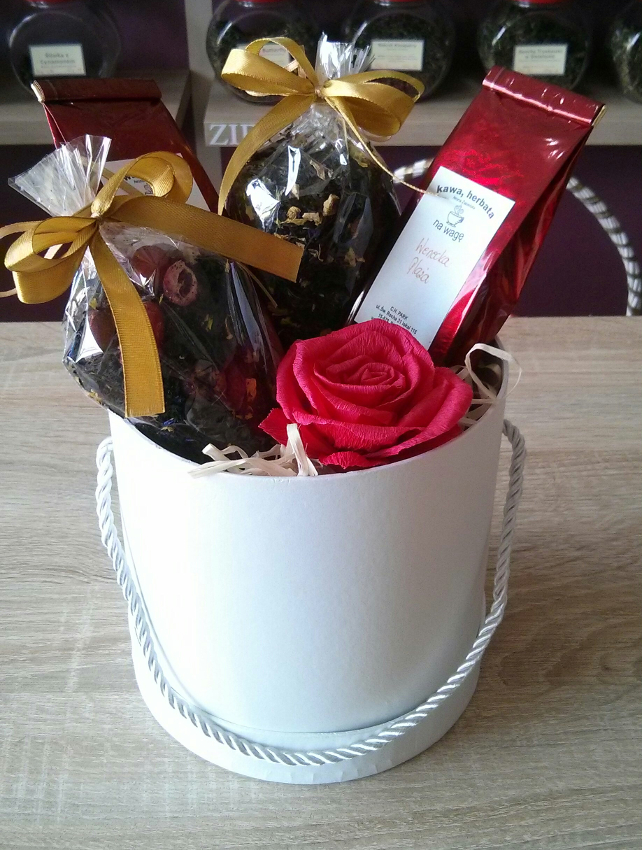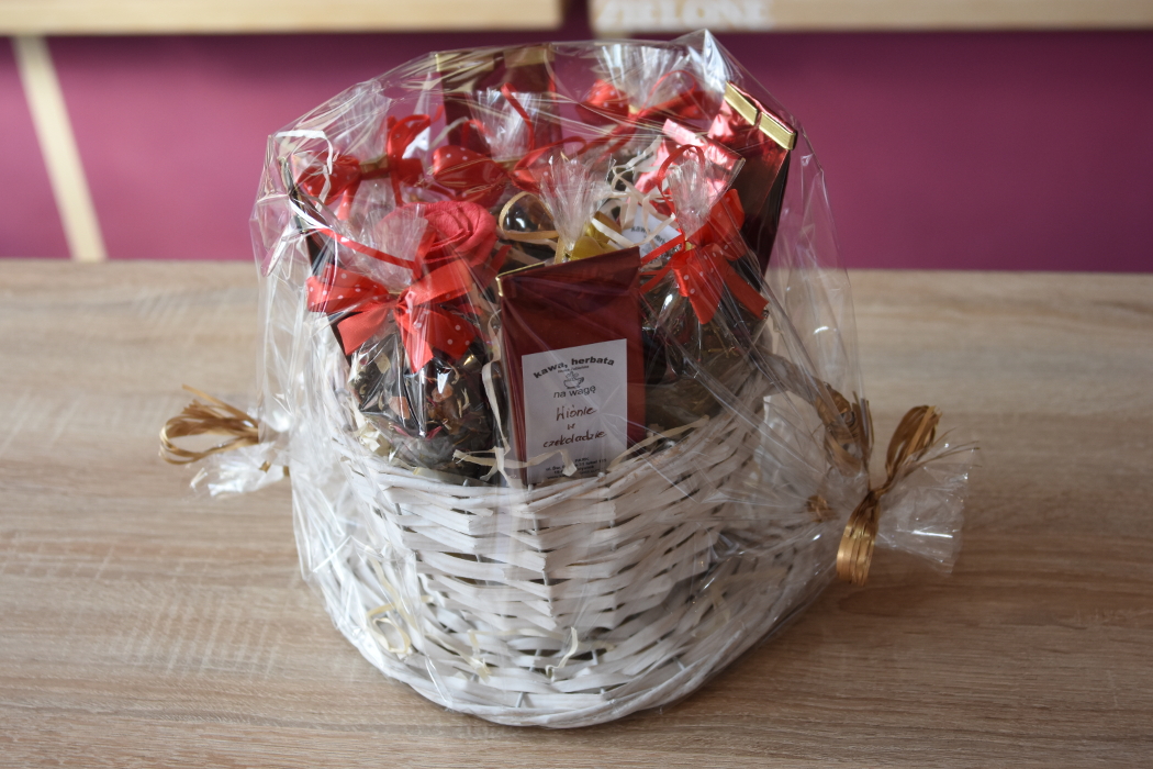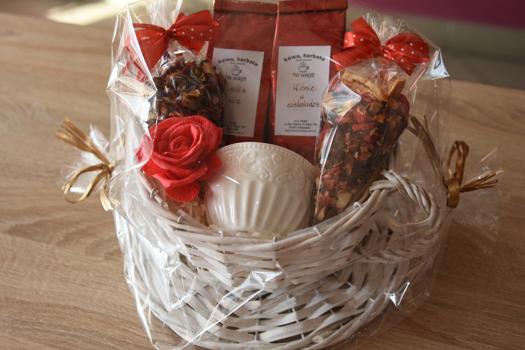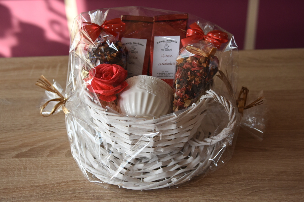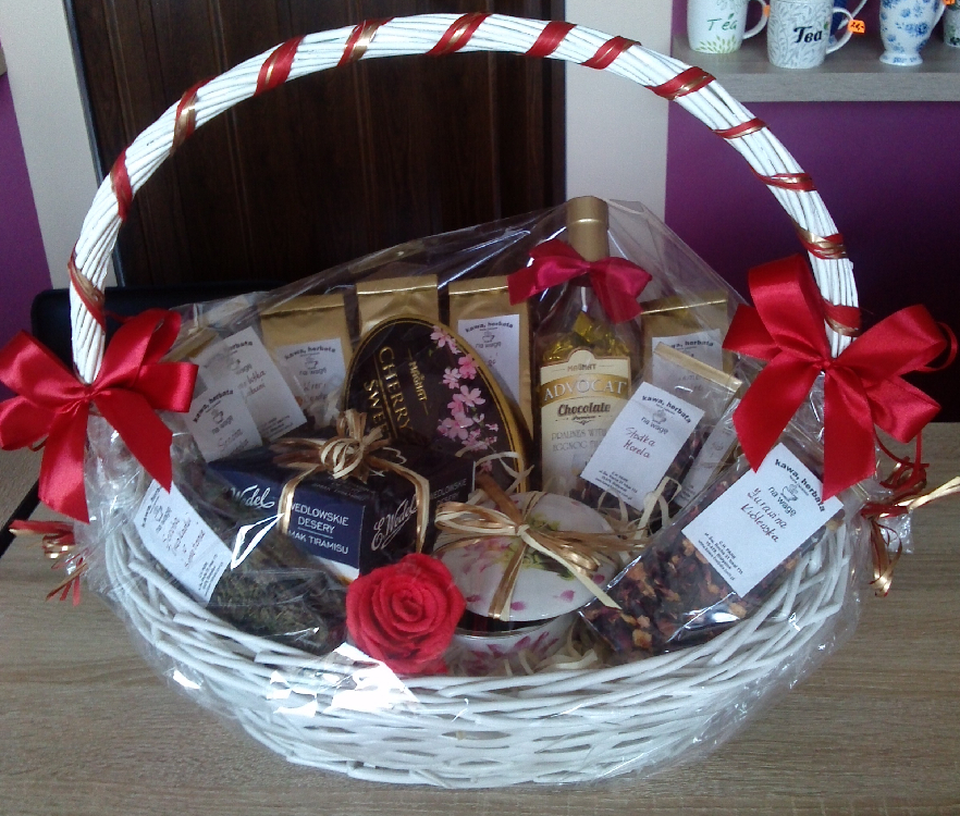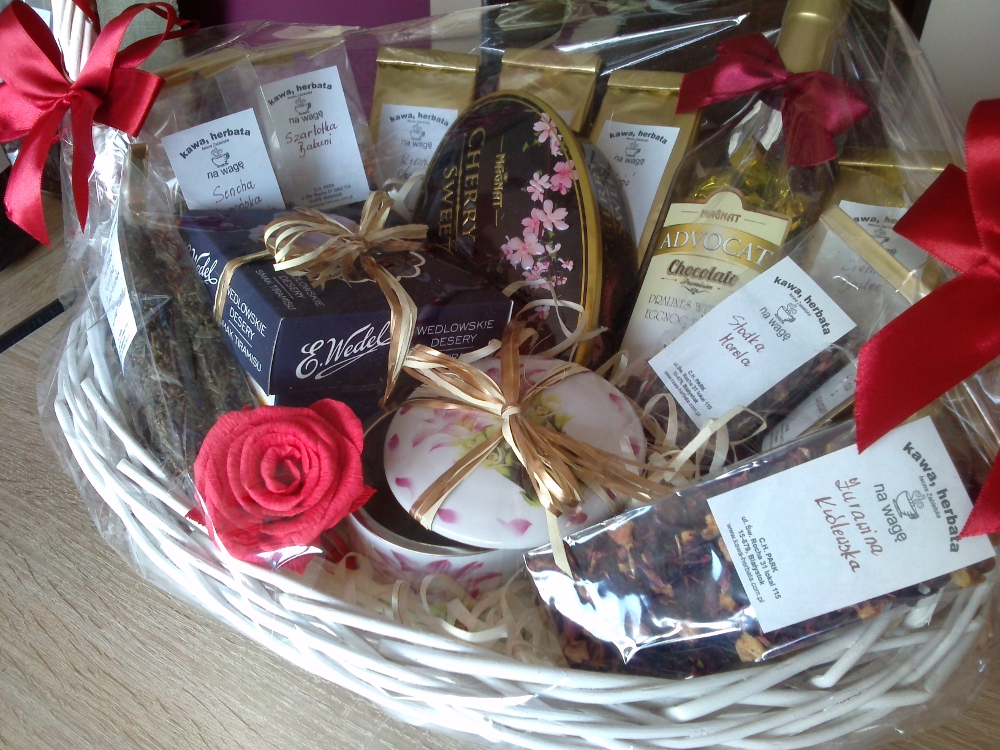 Dodatkowo do zestawu, kosza prezentowego istnieje możliwość dodania wybranego przez Państwa akcesoria (zaparzacza, filiżanki itd.).